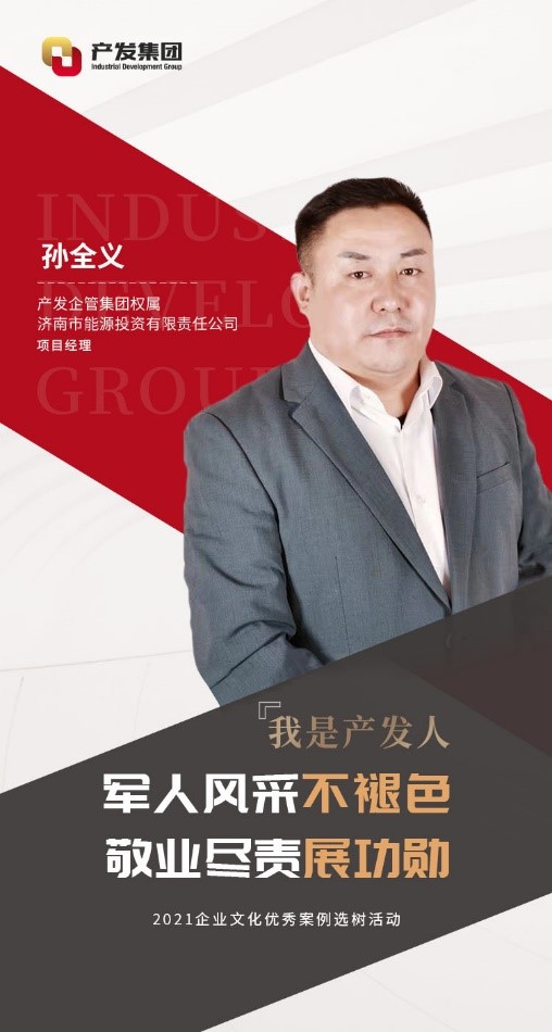 孫全義,現任產發(fā)企管集團權屬濟南市能源投資有限責任公司(以下簡稱“能投公司”)項目經理。2001年參軍,在部隊期間刻苦訓練,聽黨指揮,服從命令。2003年他從部隊光榮退役,隨后加入能投公司。期間曾借調至濟南市發(fā)改委幫助工作,現負責能投公司的資產管理工作。